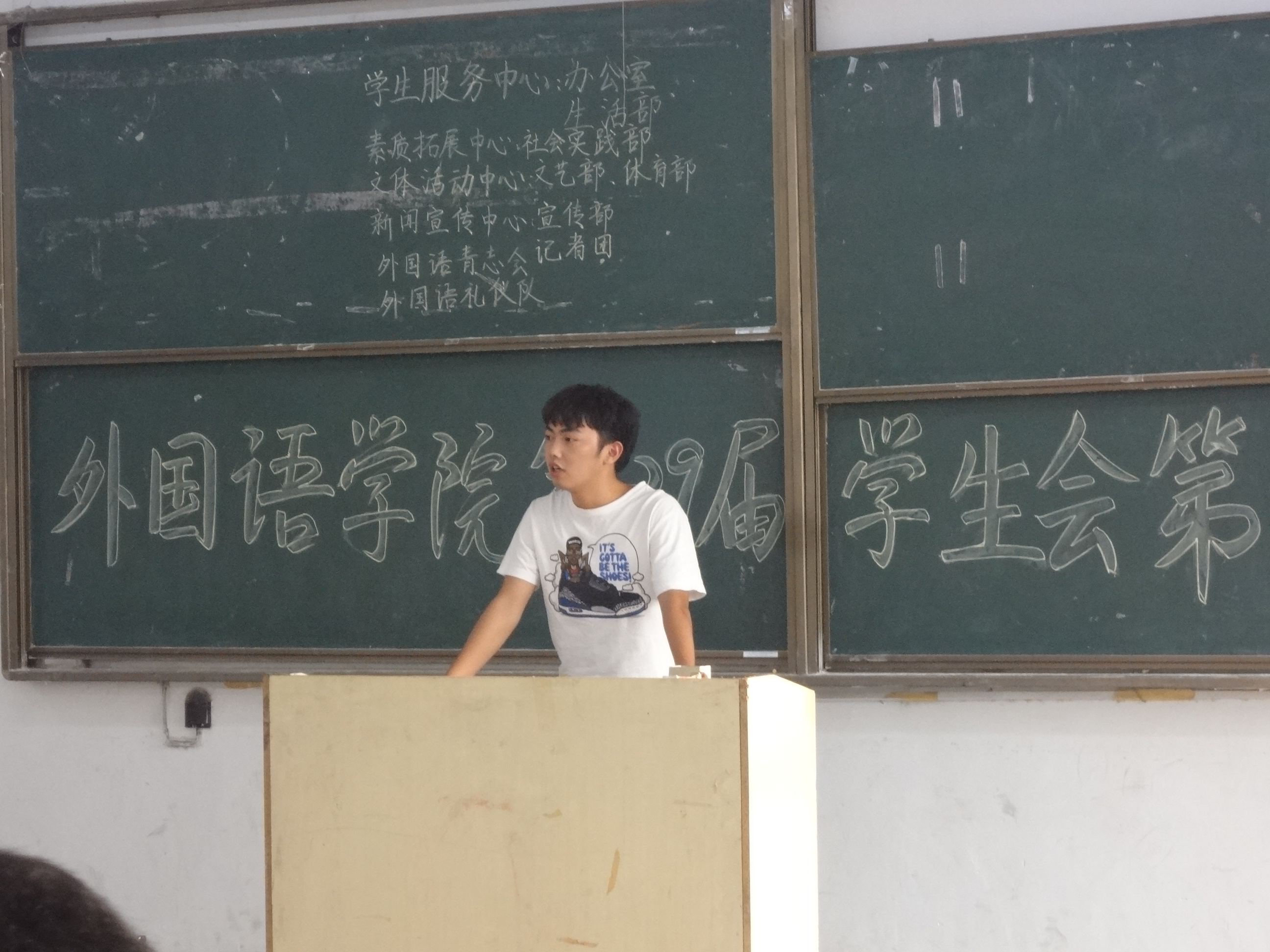 会议在主持人何伟宏简洁有力的主持下拉开帷幕!首先发言的是第29届学生会主席尹娜娜,在向第29届学生会新成员介绍近来将要举办的两项重大活动:迎新晚会及运动会后。尹娜娜同学又结合自身任职期间真实的经历与体验向学生会成员提出两点重要要求:做事要认真及各部门之间要协调配合!而后蒋明霞同学也代表主席团以风趣而不失严格的语气向各部门副部长提出了要“以身作则,为成员做好榜样”的要求,希望大家能够精诚合作,将学生会工作做好。随后,由各部门代表依次上台发言,向大家介绍本部门的主要负责工作及开展的特色活动。使各部成员明白自己所在部门及其他部门的主要任务,从而加深各部门间的相互了解,方便在日后工作中互相合作!